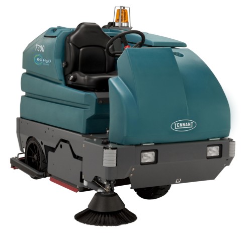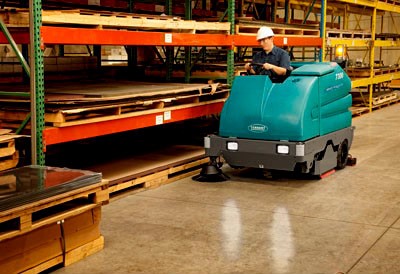 坦能7300中型電瓶供電駕駛式洗地機可清潔惡劣的工業環境,且無有害的發動機燃氣排放
